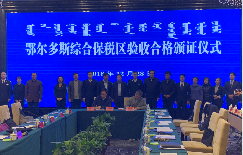 時間追溯到2012年底,鄂爾多斯啟動綜合保稅區(qū)申建工作, 2017年2月14日國務(wù)院正式同意批復(fù)設(shè)立,經(jīng)過一年多的實(shí)施建設(shè),2018年12月6日一次性通過內(nèi)蒙古自治區(qū)的聯(lián)合預(yù)驗(yàn)收,緊接著在12月28日一次性順利通過由海關(guān)總署牽頭,商務(wù)部、國家發(fā)展改革委、財(cái)政部等國家八部委組成的聯(lián)合驗(yàn)收組正式驗(yàn)收。